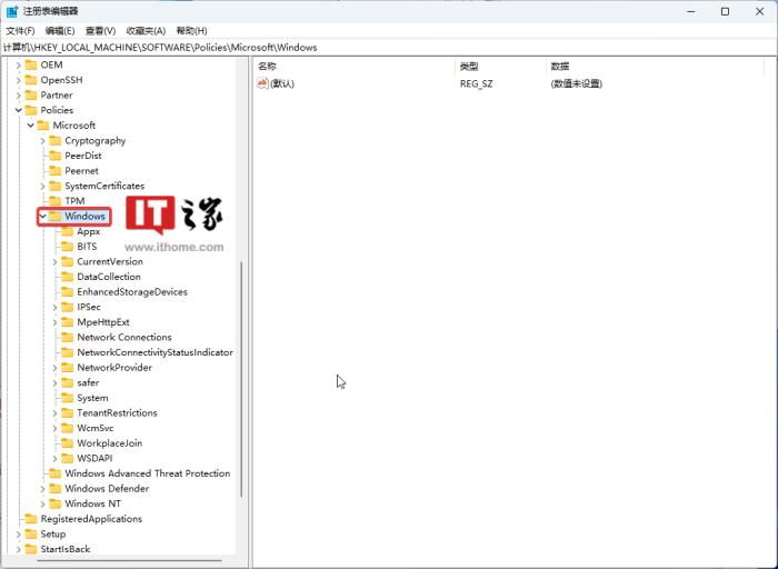 2. 在注册表顶部地址栏上输入“计算机 \HKEY_LOCAL_MACHINE\SOFTWARE\Policies\Microsoft\Windows”