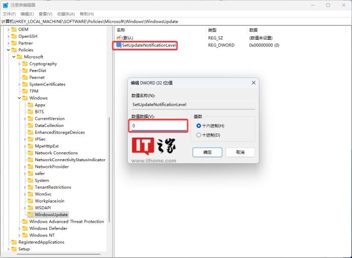 5. 将这个值重命名为 SetUpdateNotificationLevel