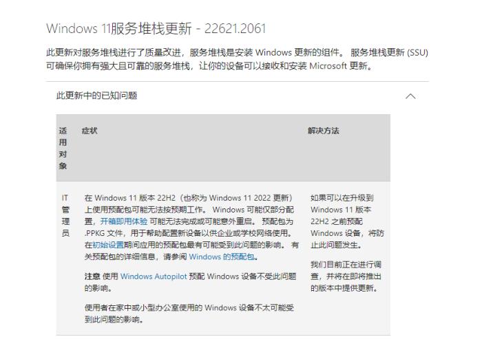 微软表示该版本可能存在预配包可能无法按预期工作的问题,即 OOBE 开箱即用体验可能无法完成或意外重启。